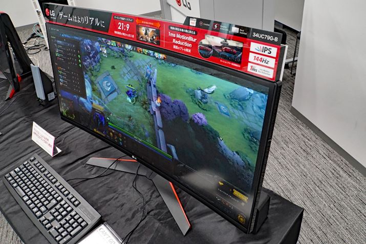 曲面IPSパネルで144Hz駆動に対応した34UC79G-B。他社のウルトラワイドゲーミングモニターと比べると、曲面パネルのカーブはそれほどきつくない