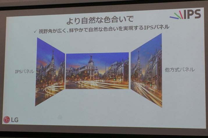16:9のワイド液晶パネルを採用する製品に比べて見える範囲が増える、ゲーミング体験時に高い没入感が得られる、曲面パネルでピント調節にかかる眼の負担が少ない、IPSで自然な色合いで見られる、高速駆動液晶でより滑らかに表示できるとった利点があるという