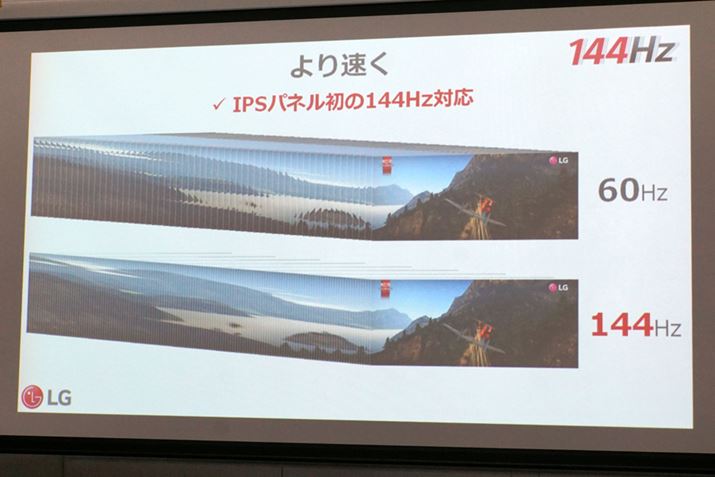 34UC79G-Bは、アスペクト比21:9の2,560×1,080ドット表示対応の34インチウルトラワイド液晶パネルを採用するゲーミングモニターだ。ウルトラワイド液晶パネルを採用した同社の製品で採用実績の多い曲面タイプのパネルを採用。IPSタイプのウルトラワイド液晶として世界初となる144Hz駆動に対応し、動画やゲームを滑らかに表示できるのがポイントとなっている。