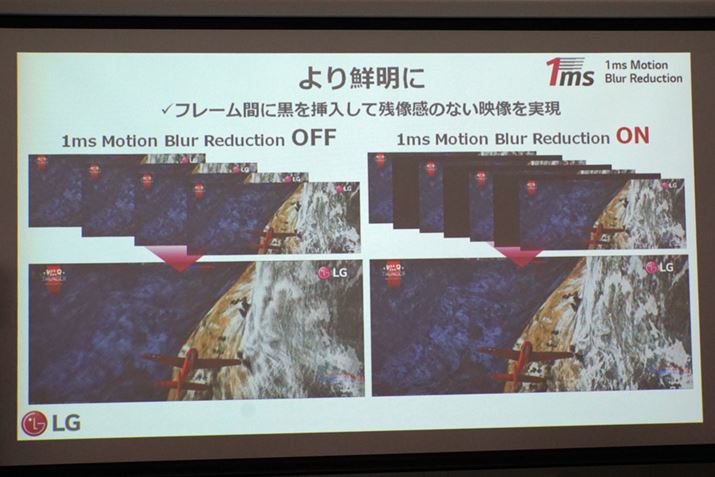 モーションブラーを低減する1ms Motion Blur Reduction。激しいアクションの多いゲームタイトルでは大きな効果が期待できそうだ