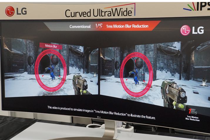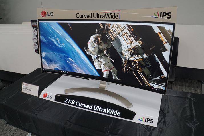 IFAで発表された38UC99も参考展示されていた。34UC79G-Bよりも画面サイズが大きいため、曲面ディスプレイのカーブはやや大きめ