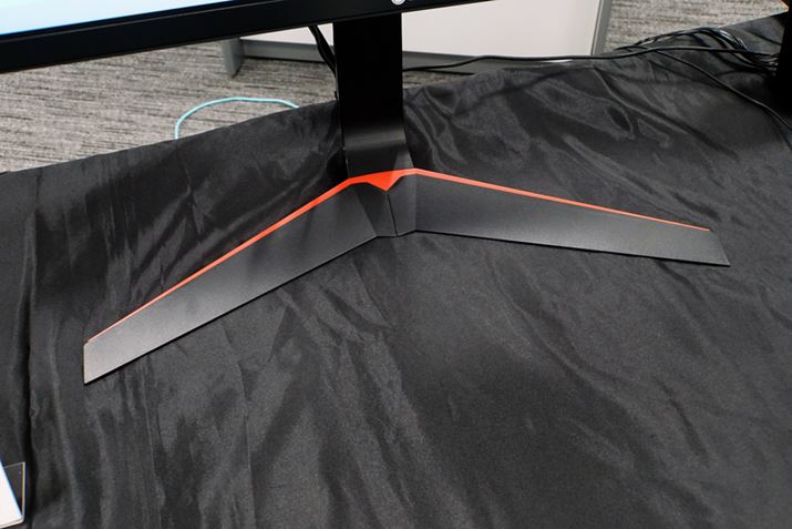 今回が初採用となるツートンカラーのV字スタンド。今後、ゲーミングモニターにはこちらのスタンドを採用するという