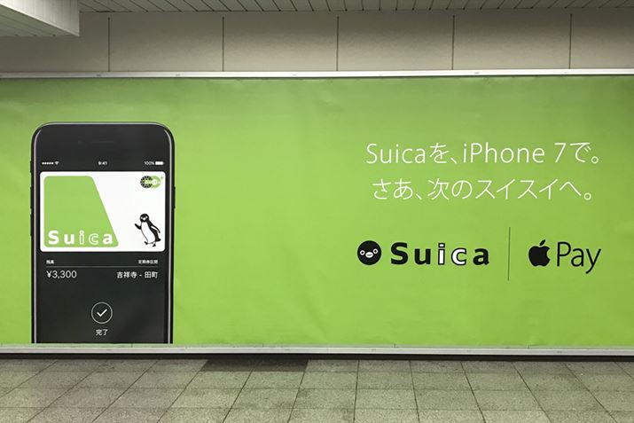 2016年10月25日に国内で始まったApple Pay。Suicaに対応しており、JR東日本の新橋駅構内には大きなポスターが貼られていた