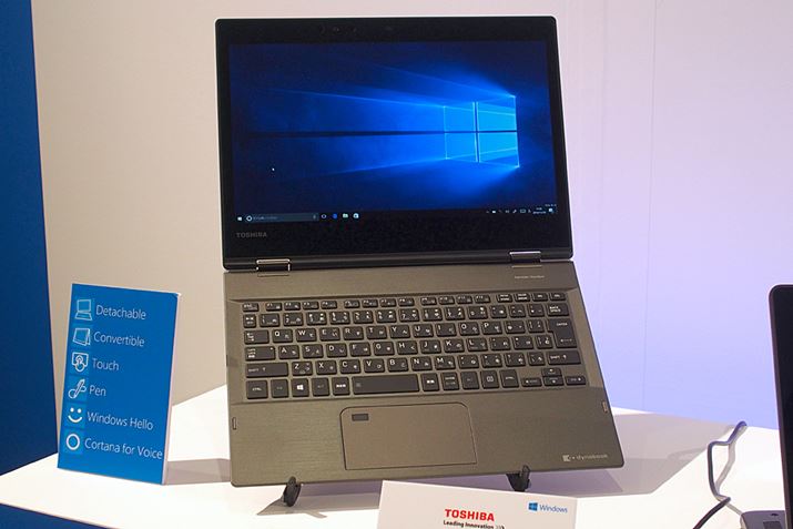 各社のイチオシモデルは発表・発売済みのモデルだったが、東芝は未発表モデルを披露。「2in1コンバーチブルdynabook」という薄型のモデルだ。年内発売を予定している
