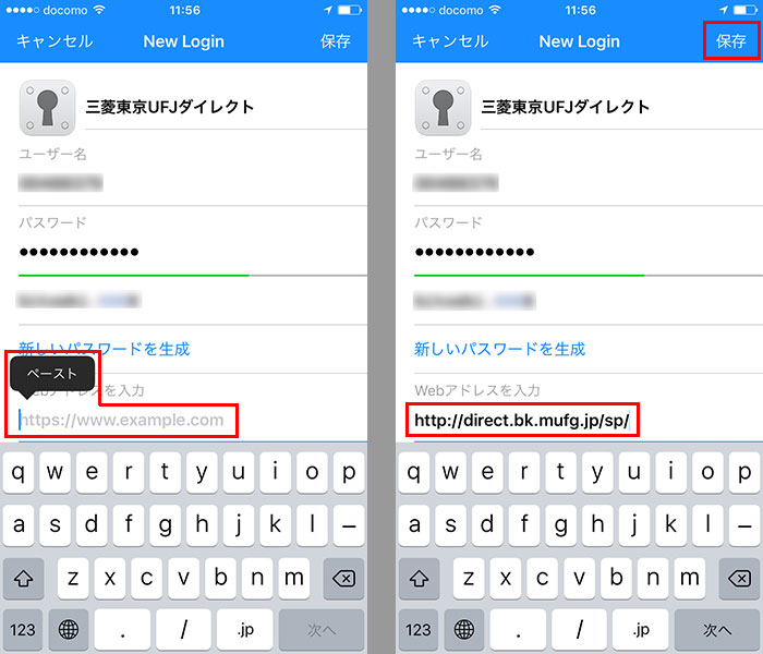 新たに追加するログイン項目にはログイン画面のURLが登録されていないので、あらかじめコピーしておいたURLをペーストする。最後に「保存」をタップしたら登録は完了だ。同様にして、さまざまなWebサービスやアプリのログイン情報を登録していく。なお、アプリの場合は、後述のように対応/非対応のものがある。