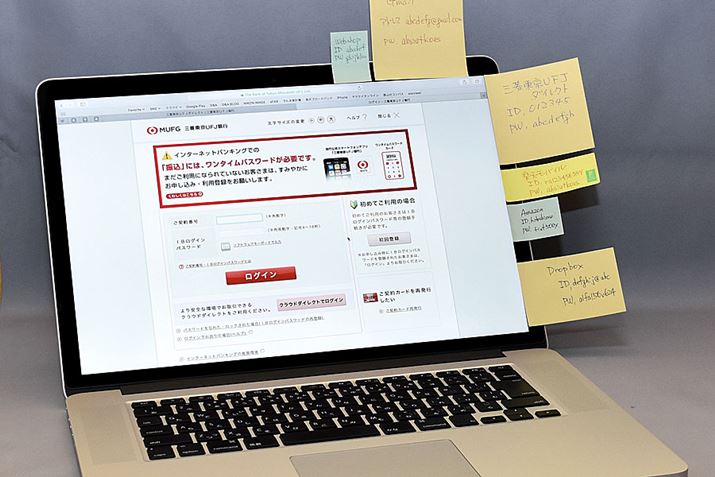 IDとパスワードを書いた付箋を、パソコンのまわりにたくさん貼ったりしていないだろうか? よく見られるが危険な光景だ