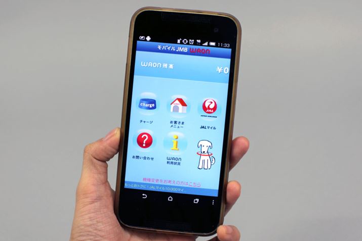 イオンが運営するWAONは、Apple Payでは対応していない電子マネーサービスのひとつ(写真はJALのマイルも貯められる「JMB WAON」のアプリ画面)