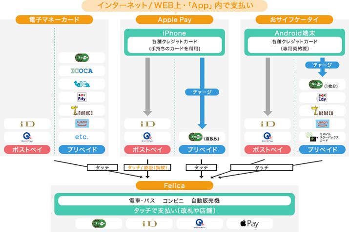 日本で「タッチで支払い」と言えば、JR東日本が発行し運賃の支払いもできる「Suica」の利用者が圧倒的に多いが、こうしたカードもスマホによる決済機能も、技術的にはソニーが開発した非接触ICカード技術「Felica(フェリカ)」を根幹としている。