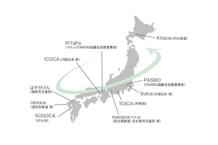 SuicaやICOCAなどの日本国内の交通系電子マネーは全国で10種類。それぞれ相互利用できるようになっている(ソニー公式サイトより)