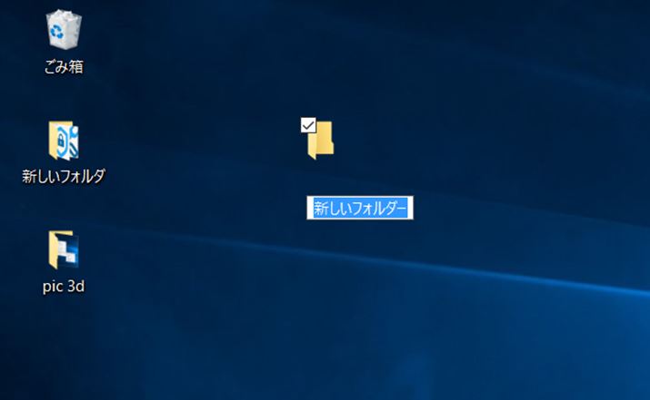 デスクトップの空いている場所で右クリックして、「新規作」→「フォルダー」を選ぶ