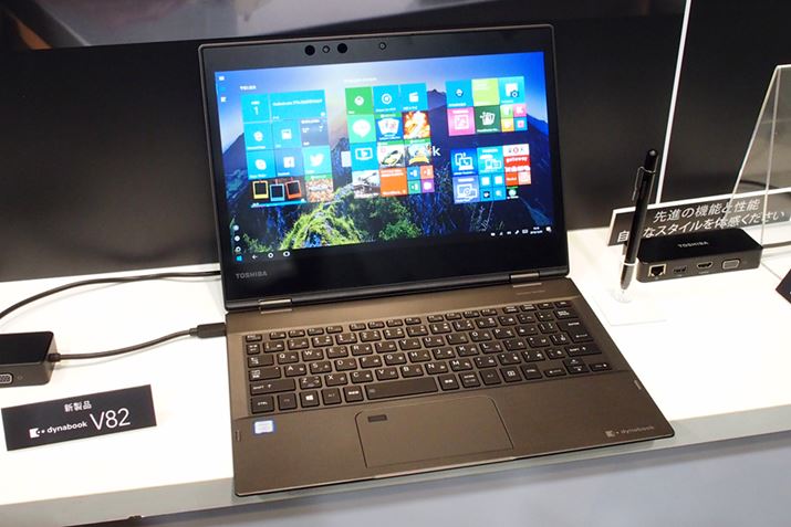 東芝は2016年12月1日、パソコンの2016年冬モデルとして、12.5型液晶搭載の2in1パソコン「dynabook V」シリーズを12月9日から順次発売すると発表した。ディスプレイ部が360度回転し、タブレットとしても、ノートパソコンとしても利用できるコンバーチブルタイプの2in1パソコン。薄型・軽量ボディでありながら、約17時間の長時間バッテリー駆動を実現したのが特徴だ。約30分の充電で約7時間の駆動を可能にする急速充電にも対応する。価格はオープンで、予想実売価格は税別で15万円台半ばから。