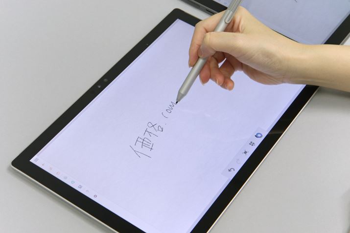 ディスプレイは12.6型液晶で、Surface Pro 4(12.3型液晶)よりもわずかに大きい。解像度は2880×1920で、2736×1824のSurface Pro 4よりも高精細だ。画質面ではsRGB比で121%、NTSC比で85%の色再現性を実現しているだけに、鮮やかな表示となっている。Surface Pro 4と比べると、少し青色が強く感じたが、高画質なディスプレイと言っていいだろう。画面が大きい分だけ、本体のフットプリント(幅と奥行)も大きいが、気になるほどの差ではない。サイズ感はほとんど同じだ。