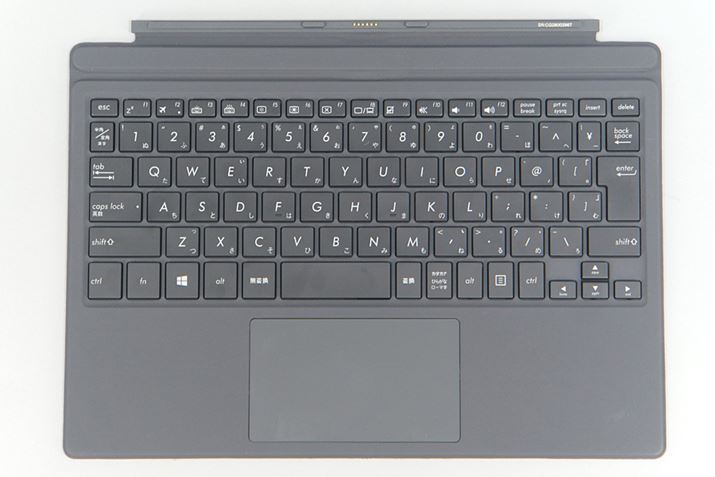 カバー兼キーボードの使い勝手は、Surfaceのものとほとんど変わらない。マグネットで固定することで、キーボード面に角度を付けられる構造も同じだ。強めにタイピングした場合に、ほどよくたわむことでショックをやわらげてくれるところも変わらない。実測のキーピッチは、TransBook 3のほうがわずかに広く余裕があるが、カバー兼キーボードの使い勝手に大きな差はないと言っていいだろう。ただ、Surface Pro 4のカバー兼キーボードは別売りなのに対して、TransBook 3には付属するので、おトク度はTransBook 3のほうが上だ(※Microsoft Storeでは特定のSurface Pro 4を購入すると、カバー兼キーボード「Surface Pro 4 タイプ カバー」が無料となるキャンペーンを実施している)。