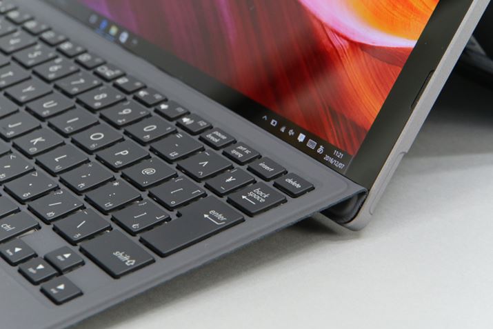 カバー兼キーボードは本体と接続する部分をたたむと、キーボードに角度を付けられる。この仕組みもSurface Pro 4と同じだ