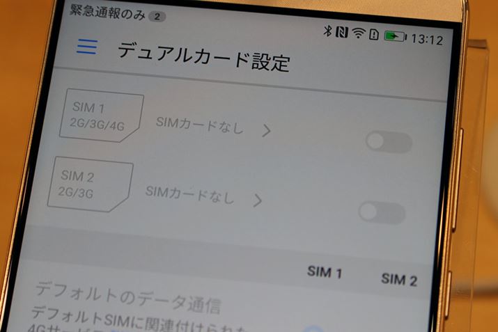 2基のnanoSIMカードスロットを備え、スロット1は、LTE、3G、2Gに、スロット2は3G、2Gに対応。デュアルSIMデュアルスタンバイにも対応する