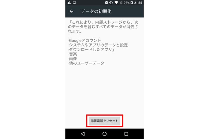 最後は端末の初期化だ。ここまでやれば、安心して譲渡できる。