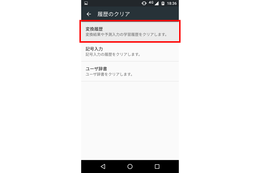 「変換履歴のクリア」が開いたら「変換履歴」をタップする