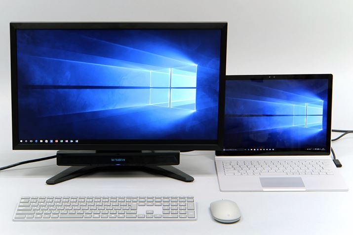 2016年12月1日に発売されたSurfaceキーボードとSurfaceマウス(手前)。今回は「Surface Book」に「Surface ドック」を組み合わせて試した。価格.com最安価格はSurfaceキーボードが11,641円、Surfaceマウスが5,907円(2016年12月26日時点)