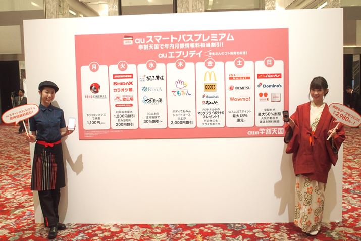 なお、今回の学割対象ユーザーには、定額音楽配信サービスの「うたパス」(月額税別300円)と、1月20日から提供を開始する「auスマートパスプレミアム」(月額税別499円)の新規加入で2017年12月まで月額利用料相当が割引されるという特典も付与される。特に「auスマートパスプレミアム」で提供される「auエブリデイ」は、月曜日に映画チケットの割引、火曜日にカラオケ施設の利用料金割引、金曜日にマクドナルドのフライドポテトをプレゼントするなど、曜日に応じたさまざまな特典を提供するというもので、ライバルのソフトバンクが提供する「SUPER FRIDAY」を意識した面白いサービスとなっている。学割対象ユーザーなら無料で利用できるので、ぜひ積極的に使っていきたいところだ。