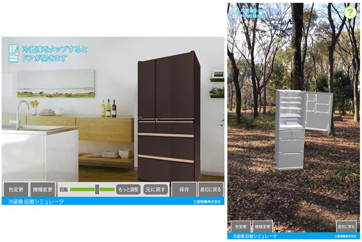 実際の風景の中に、製品のCGを実寸大で表示できる。製品にカラーバリエーションがある場合は選択が可能で、ドアを開けたイメージもつかめる(iOS版はこちら/Android版はこちら)