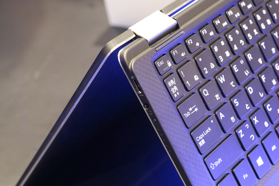 CPUには、TDP(熱設計電力)が4.5WのYシリーズを採用しており、「Core i5-7Y54」(1.20GHz、最大3.20GHz)と「Core i7-7Y75」(1.30GHz、最大3.60GHz)の2種類から選択できる。通常モデルはTDPが15WのUシリーズを採用しているので、CPUの性能はやや劣る。メモリーは8GB〜16GB、ストレージは256GB/512GBのSSD(PCIe接続)。ディスプレイは1920×1080のフルHDが基本で、3200×1800のQHD+も選べる。外部インターフェイスには、USB 3.1 Type-Cを2基備えており、そのうち1基はThunderbolt 3に対応する。バッテリー駆動時間はカタログスペックで、フルHDモデルが約15時間、QHD+モデルが約8.5時間。本体最は304(幅)×199(奥行)×8〜13.7(高さ)mm、重量は最軽量構成時で1.24kg。