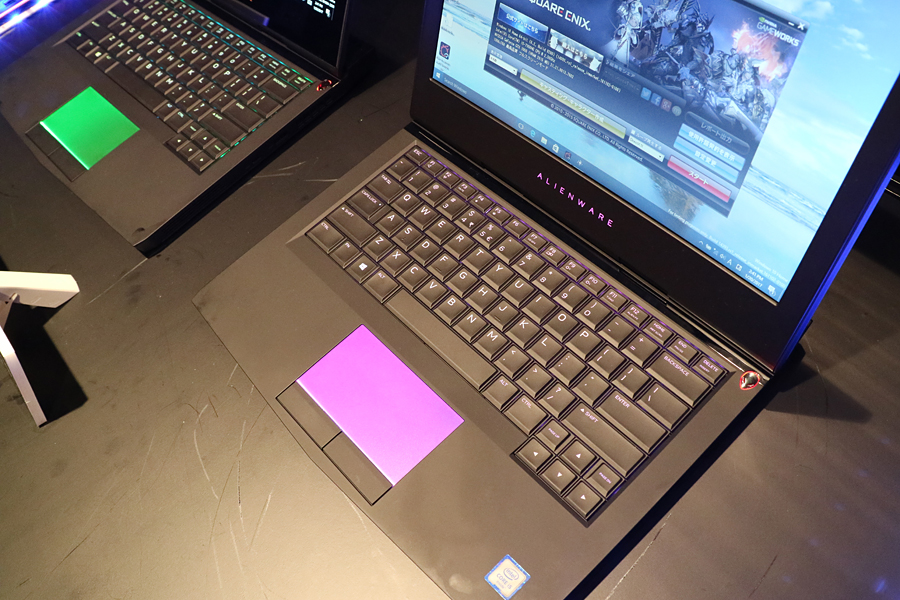 本体は、既存の「ALIENWARE 15/17」と同じ「ヒンジフォワードデザイン」。ヒンジを少し前に設置することで、背面での効率的な排熱処理を実現している。本体側面のイルミネーションは省かれているが、タッチパッドや天板のロゴ部分などの色や光り方はカスタマイズできる。キーボードはnキーロールオーバーに対応し、1分あたり最大108キーコマンド以上を実現。キーストロークも2.2mm確保している。