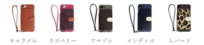 カラバリはほかにキャラメル、アマゾン、インディゴ、レパードの5色展開(iPhone6/6s Plus、iPhone6/6s用はキャラメル、ラズベリー、アマゾンのみ)