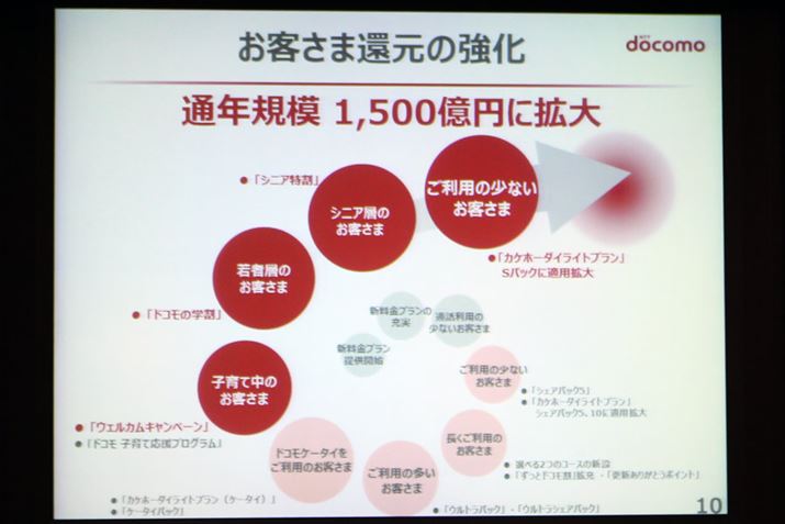 NTTドコモでは、好調の決算に支えられ、ユーザーに年間1500億円規模のユーザー還元を実施する。今回の新料金プランもこの方針に基づいたものだ