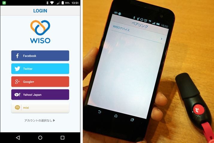 無料アプリ「WSIO」を起動するとGoogle+、Twitter、Yahoo! Japan、Facebook、mixiいずれかのアカウントでのログインが求められます(いずれかのアカウント必須)