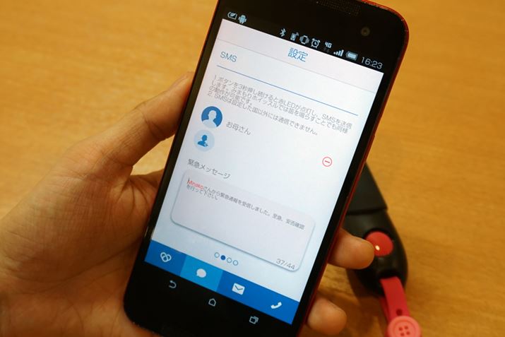 緊急連絡先はSMS(ショートメッセージ)と電子メールを各3件、電話番号(発信側がAndroid端末のみ)を1件登録可能。みまもりホイッスルで緊急発信すると、登録した連絡先に一斉に通知されます。なお、みまもりホイッスルとスマートフォンの通信距離は最大約10m
