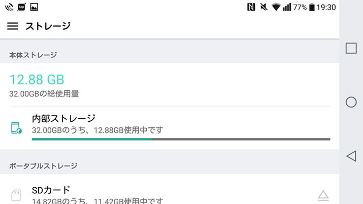 検証機のアプリのバージョンアップをひと通り行った時点でのストレージの空き容量は12.88GB。高性能カメラや、ハイレゾ対応オーディオ機能を搭載するハイエンド機としては潤沢な容量とは言えない。存分に使いこなすなら大容量のmicroSDカードはぜひ組み合わせたいところ