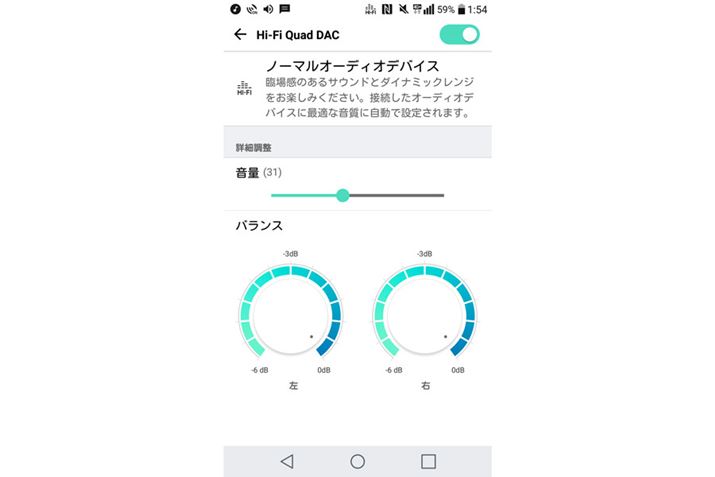 通知メニューのショートカットから、このクアッドDACの動作オン/オフを切り替え可能。聴き比べることで、その効果を実感しやすい