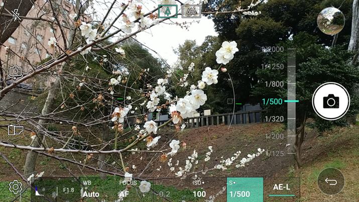 スマートフォンで使われるカメラは広角の短焦点レンズが一般的なので、どの機種を使っても構図が似通いやすい。しかし、本機は画面をタッチするだけで75°の標準画角を選べるので構図に変化を持たせることも容易に行える。また、標準レンズは、周辺部のひずみが少なく、背景をぼかした表情のある撮影を行う場合にも有利だ。このように本機のカメラ機能はほかの機種にはないユニークなもので、購入の強い動機となりうるだろう。