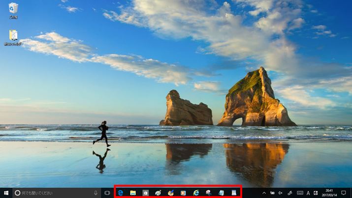 タスクバーにアプリのアイコンが登録(ピン留め)されている。この状態でWindowsキーと数字キーを同時に押す