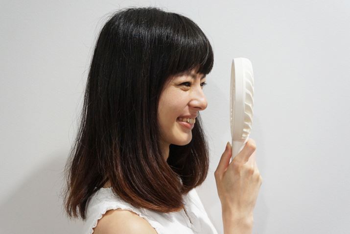 「モバイルうちわ」は、簡単に言うと携帯できる扇風機。乾電池で動くので、いつでもどこでも使えます。ファンが回るだけの単純な作りのように思われるかもしれませんが、送風の構造に工夫あり! 薄型ボディながら2種類のファンを搭載することで、直進性のある風を生み出すそう。つまり、小さくてもパワフルな風が作れるのです。