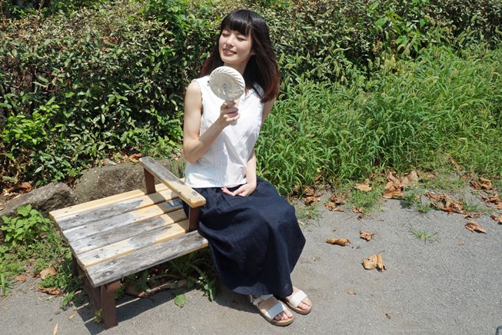 スカートは通気性がよく思われますが、けっこう熱がこもります。女性ならやったことがあるであろうスカートの中に送風することも、モバイルうちわだとスマート!