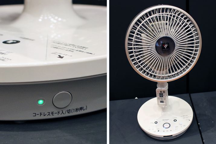 最上位モデル「PJ-G2DBG」は台座側面にあるボタンを押すことで、コードレスで使えるようになります。バッテリー残量ゼロの状態から満充電までの所要時間は約6時間。最大約14時間連続運転できます