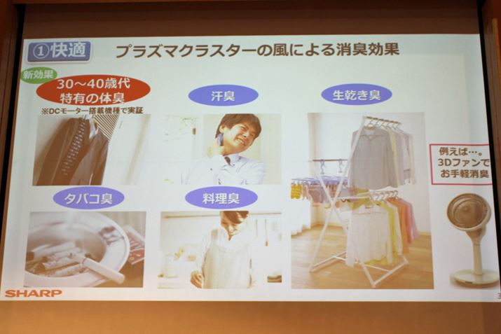 なお、3DファンとリビングファンのDCモーター搭載機では、30〜40代特有の体臭「ミドル臭」も消去できることが実証されたそう。寝具や衣類に染み付いた体臭に送風するだけでOK
