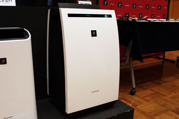 室内の湿気を取るためだけでなく、洗濯物の部屋干し派の増加にともない、衣類乾燥機としてのニーズも高まっている除湿機。シャープでは、リビングでもパワフルに使える大容量の「CV-G120」(市場想定価格:58,000円前後)と、サニタリールームで利用しやすいコンパクトな「CV-G71」の2ラインアップを展開。どちらもコンプレッサー方式なので、消費電力が少ないのも魅力です。