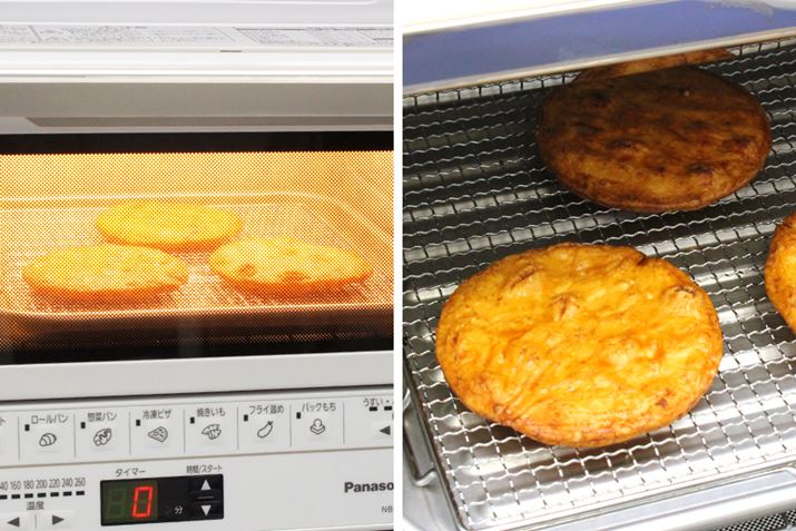 製品には、お餅を焼いたり、揚げものを温めなおすときに使うトレーと焼き網が付属しています