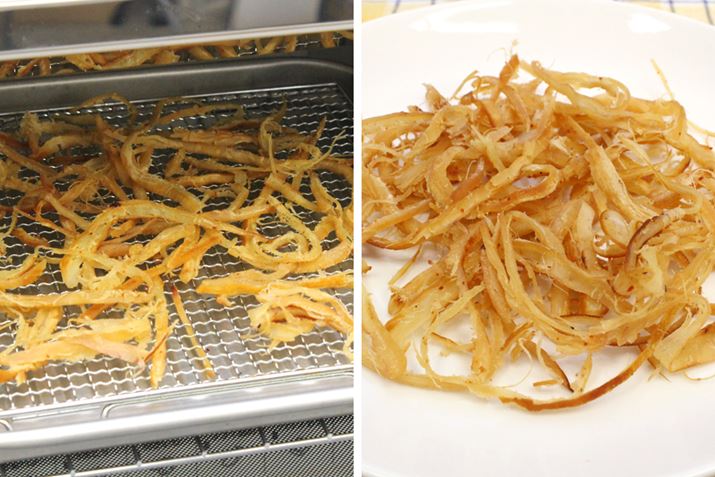 さきいかを「ドライ」機能で5分乾燥させてみると、温かく香ばしさが増します。こんなに細くても焦げないから安心