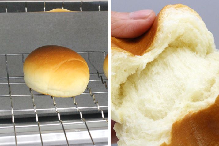 左がNB-DT51で温めたロールパン、右が専用の温めなおし機能が付いていない普通のトースターで温めたロールパンです。普通のトースターでもわりとおいしく温められたのですが、NB-DT51だとふんわり感がこんなに違う!
