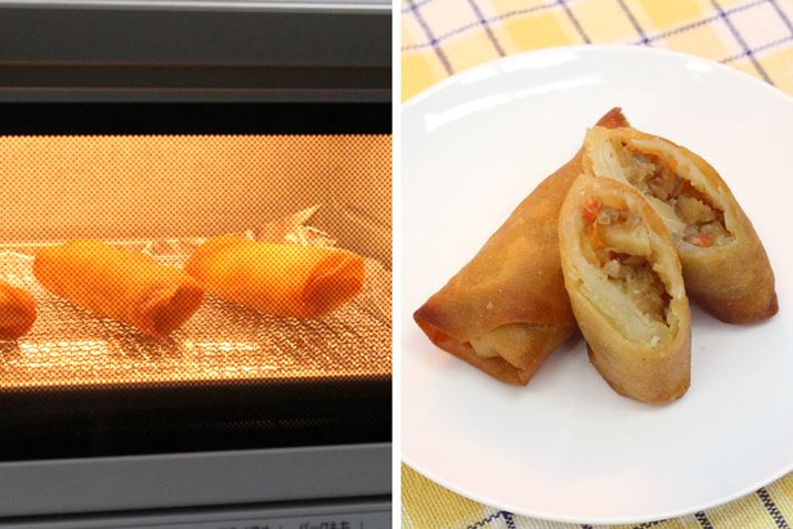 うれしいのは揚げものの温めなおしがうまくできること。「フライ温め」ボタンで、春巻きもベチャッとならずに、皮はパリッと、中身はトロッとジューシーに温めることができました