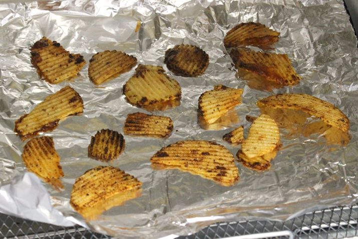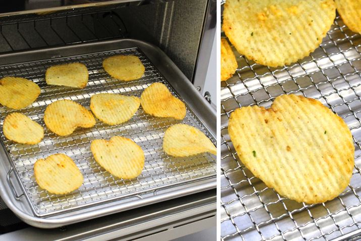 ちなみに、「ドライ」機能がない通常のトースターを使ってポテチを乾燥させようとしたら、以下の写真のような状態に……。ちょっと目を離したスキに3分程度でこんなに焦げてしまいました。