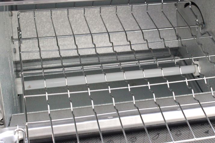 上面に遠赤外線ヒーターと近赤外線ヒーターを1本ずつ、下面に遠赤外線ヒーターを1本搭載しています。これら合計3本のヒーターを、メニューにあわせて独立制御する仕組みです