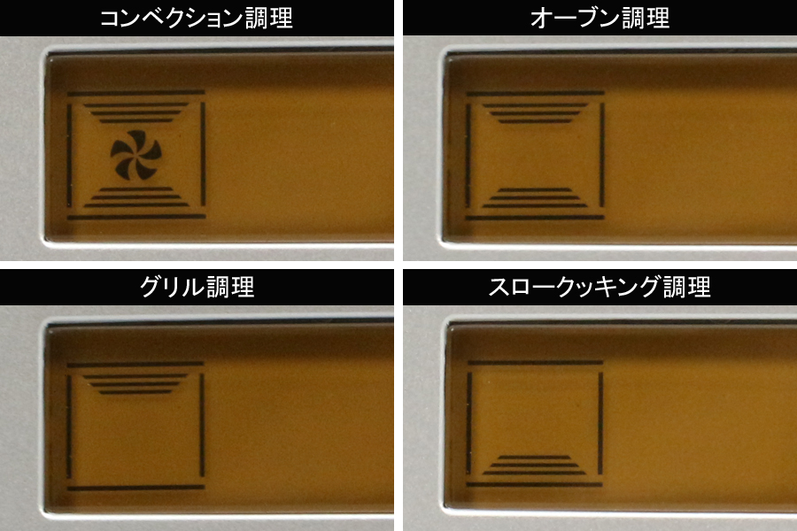 ファンと上下のヒーターの組み合わせを変えることで、4種類の異なる調理が可能