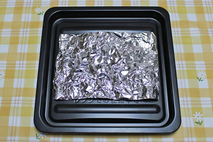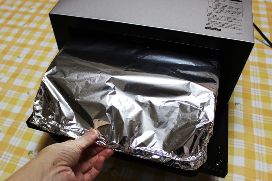 アルミホイルで覆った角皿を庫内にセットしたら、準備完了です