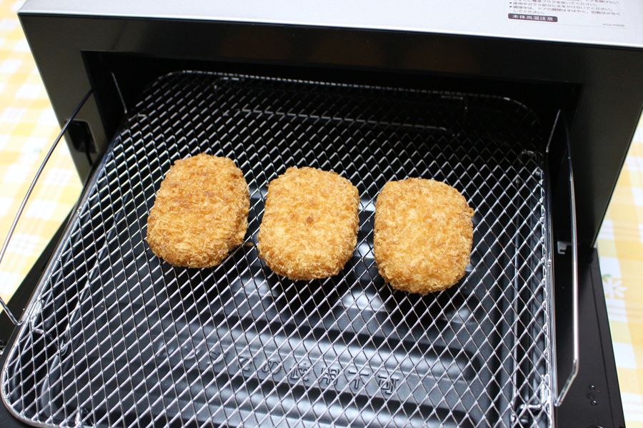 冷蔵庫に1晩入れておいた、衣がフニャフニャになったコロッケの温め直しに「ワンタッチ加熱」を利用します
