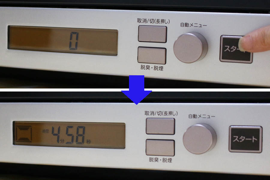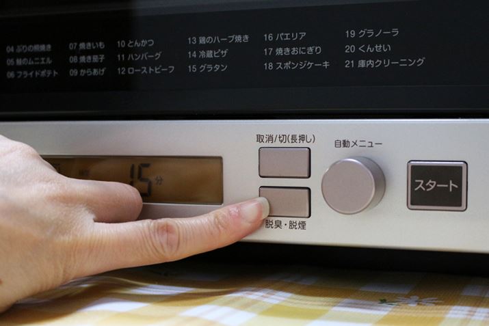 調理を始めてから「脱臭・脱煙」ボタンがあることに気付きました。焼き魚にはうってつけっぽいので、とりあえず押してみると……