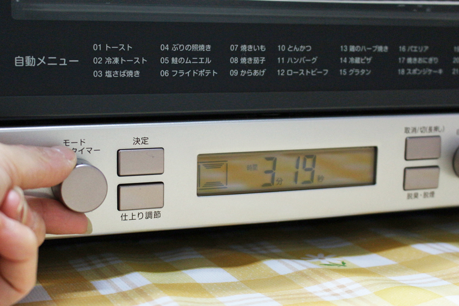 表面がまんべんなく焼き上がりました! 手動でも操作には数十秒ほどしか時間はかかりません。多機能ながら、オーブントースター感覚で使えるわかりやすさは気に入っています